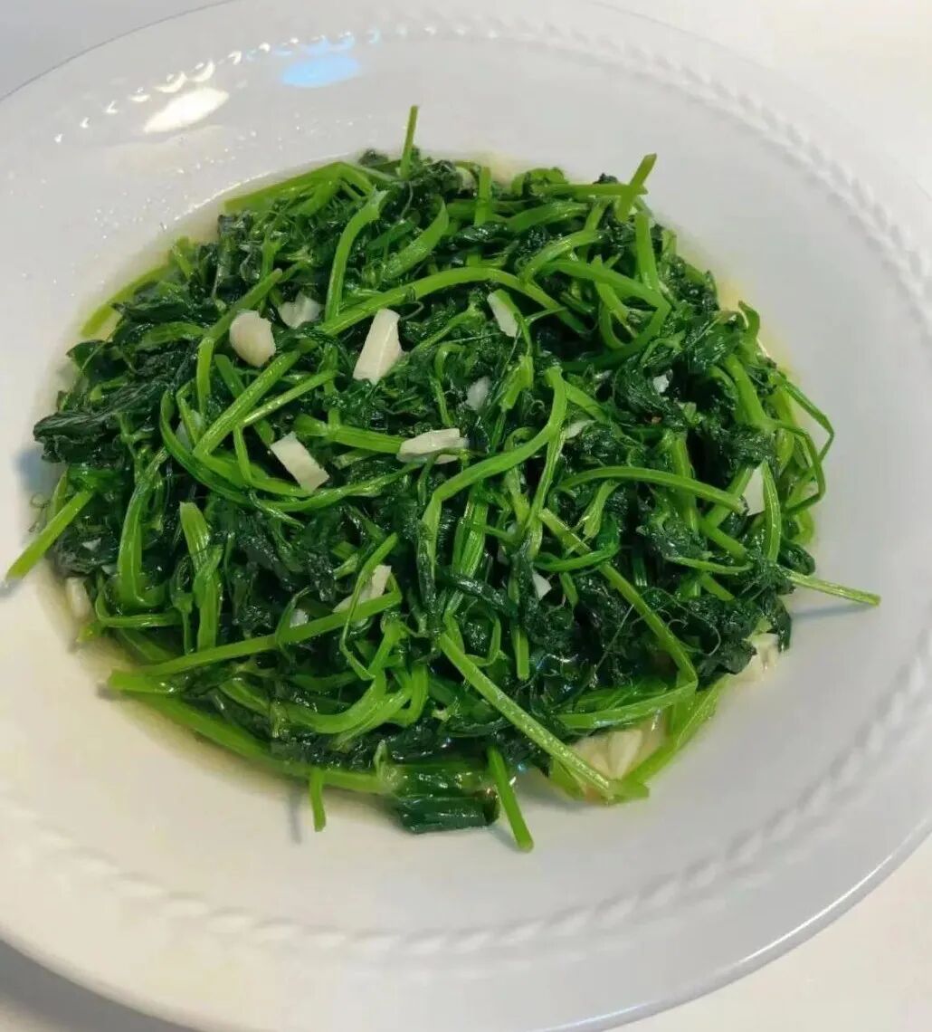 春天第一鲜,香气扑鼻,超下饭。 二. 豌豆苗 · 清炒豌豆苗 【食材】 豌豆苗、大蒜、盐、食用油 【做法】 1. 豌豆苗洗净沥干,蒜切片。