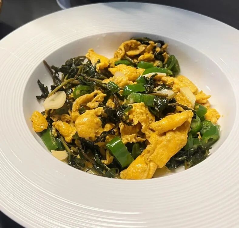 低脂清爽,春天吃正好。 六. 枸杞芽 · 枸杞芽炒鸡蛋 【食材】 枸杞芽、鸡蛋、盐、食用油 【做法】 1. 枸杞芽洗净,焯水去苦味。