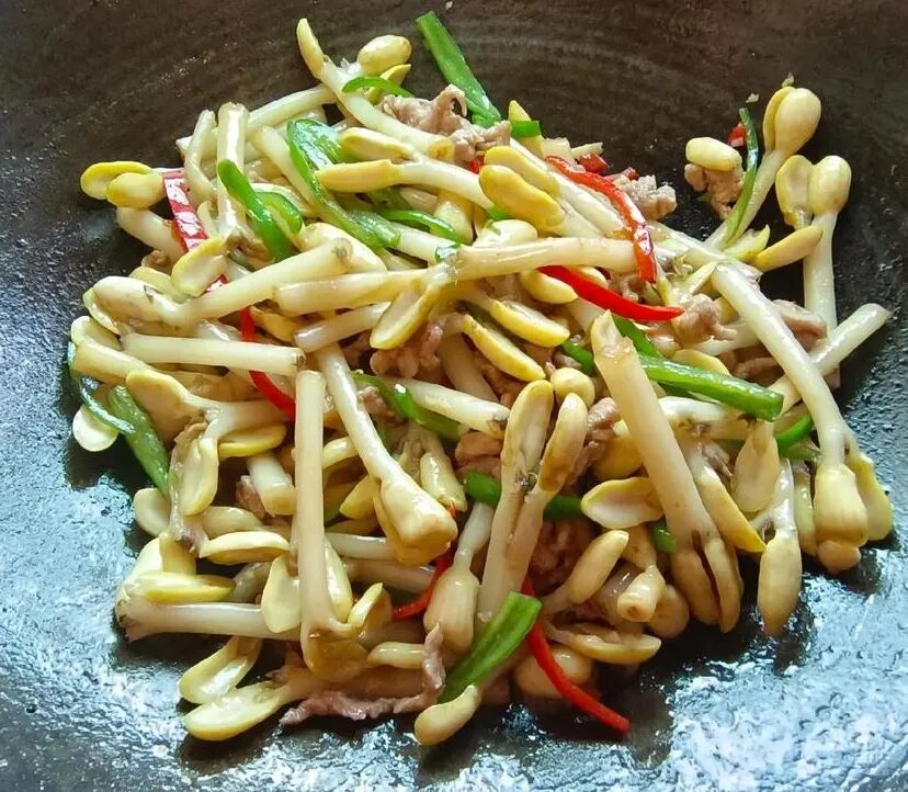 清淡护眼,春日吃格外舒服。 七. 花生芽 · 清炒花生芽 【食材】 花生芽、红椒、青椒、蒜、盐、食用油 【做法】 1. 花生芽洗净,红椒青椒切丝。