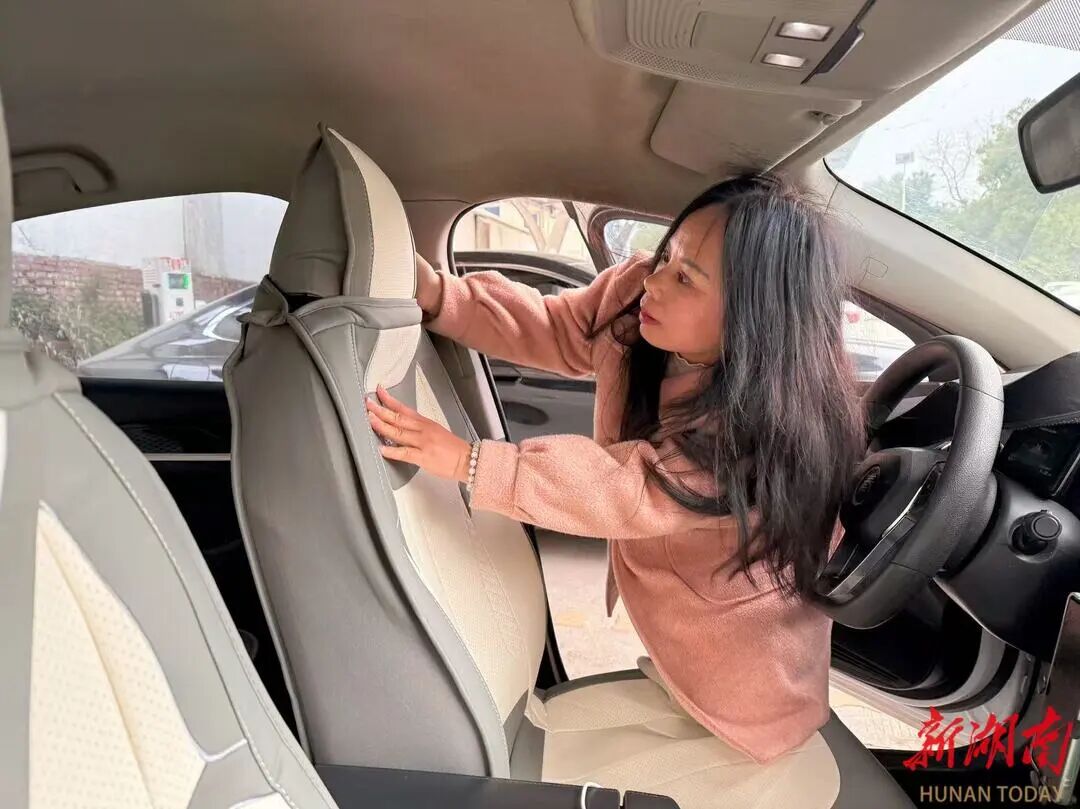 3月6日,李华清提前收到了节日礼物,趁着还没接单,她把车停在路边,将新座套细心地装上后退后两步,站在车门外打量了一圈,嘴角不自觉地翘了起来。