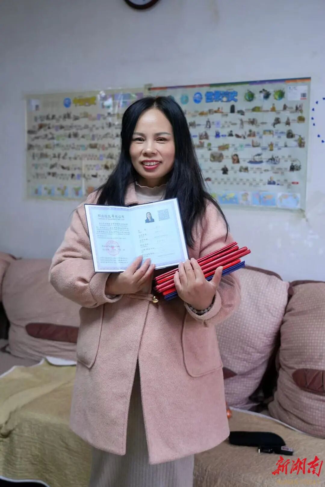 李华清捧着自己考取的各项证书。谢佳燊摄