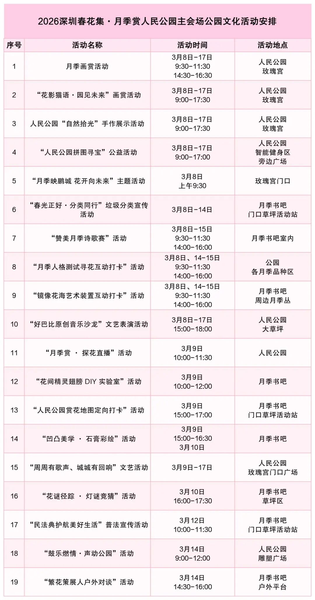 月季赏期间,人民公园策划十九项形式多样的文化活动,涵盖艺术鉴赏、趣味互动、科普文艺、文化创作等多个领域,让市民在赏花之余,尽享游园之乐。