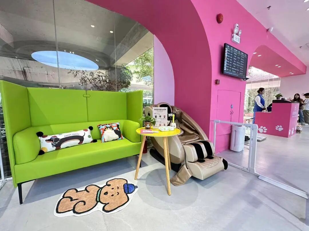 白云机场宠物航站楼为携宠出行的旅客设置休息区,现场配备粘毛器、按摩座椅、手磨咖啡及饮料等服务,同时还为宠物提供舒适休息沙发、猫抓板及鲜粮补给站。针对首次乘机的宠物,特别提供宠物专用解压精油和恒温恒湿吸氧舱,而乘机抵达白云机场的宠物还可享受干洗护理及安抚服务,缓解旅途疲劳。