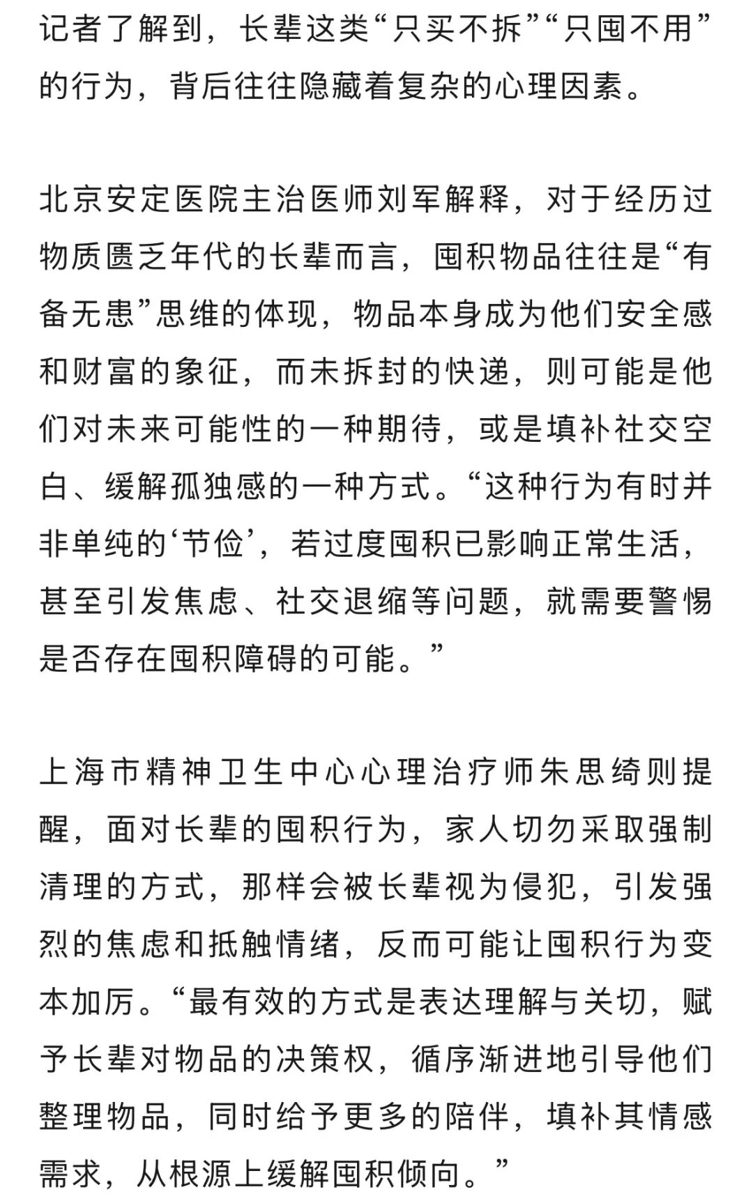 近日,一位IP地址为江苏的网友晒出妈妈10年未拆的快递堆满仓库的视频,引发全网热议。