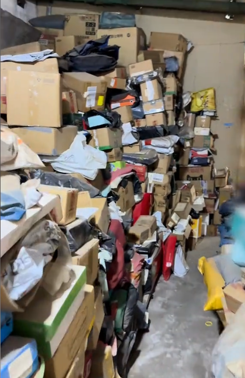 视频中,家中租用的仓库被母亲攒了10年的未拆快递堆满,密密麻麻的纸箱堆叠至屋顶,被网友戏称“打下了一片快递江山”。