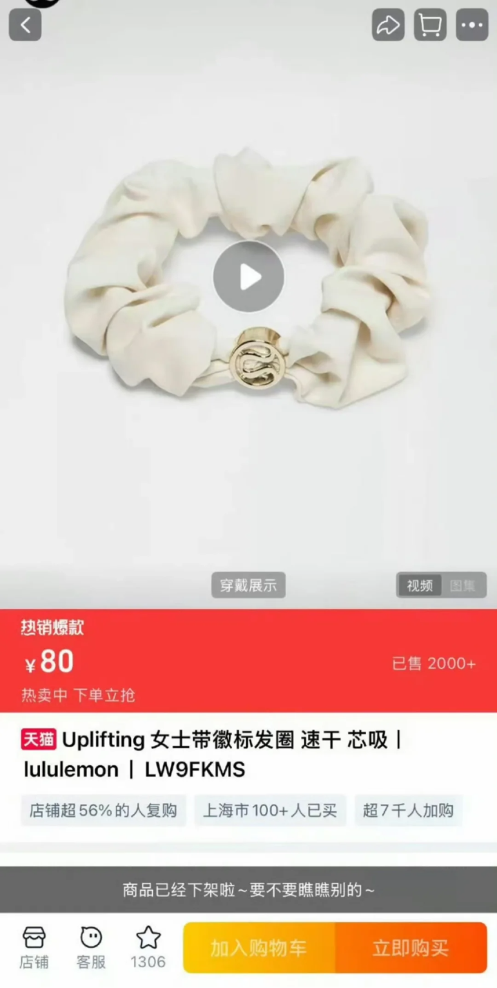 3月10日搜索Lululemon多个电商平台店铺时,这款发圈均显示为缺货状态。Lululemon店铺客服表示,这是一款经典发圈,很适合日常使用,近期有很多消费者都在咨询这款产品,但目前已售罄,后续会不定时补货。