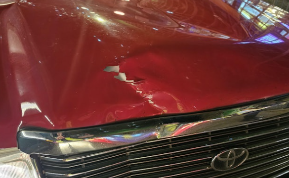 現場可見,涉事的士車頭損毀,車頭冚凹陷,地上遺有一隻拖鞋;54歲張姓司機則在場助查。