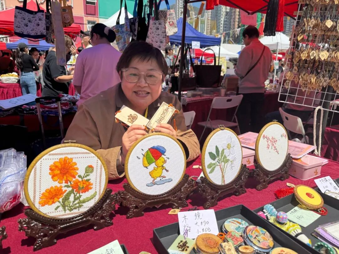 参与墟市的其中一位档主林凤是双面绣十字绣手工艺传承人,曾获“联合国教科文组织世界遗产及非物质文化遗产”导师培训计划-(业界)证书。林凤在墟市节售卖自己创作的双面绣十字绣、木烙画等非遗工艺品,她表示希望透过活动向大众推广中国传统手工艺文化,“本次社区墟市提供了一个很好的平台,可以发挥手艺人的创意,也让市民更了解及欣赏本地手作”。