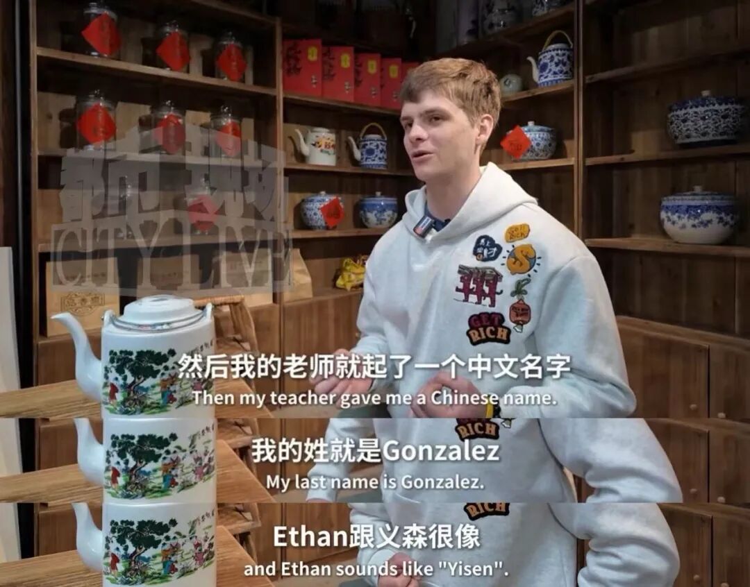 高中时,身边的同学选西班牙语、法语,他却选了中文课。老师为了方便他和中国人打交道,给他起了个中文名——“巩义森”。“我的姓Gonzalez,发音像‘巩’,Ethan像‘义森’,老师就翻成了这个名。”他解释道。