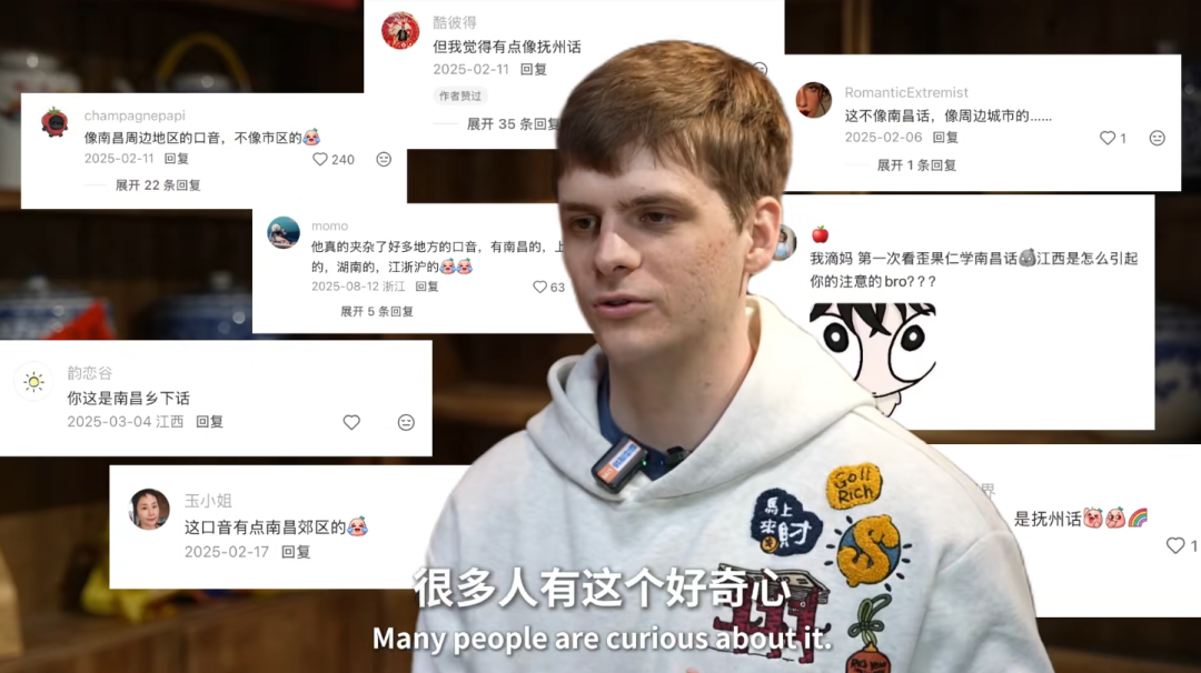 面对质疑,他幽默回应:“我自学,口音是网上博主混合版,再加外国人滤镜,和我老婆无关——这是‘美国口音南昌话’!”