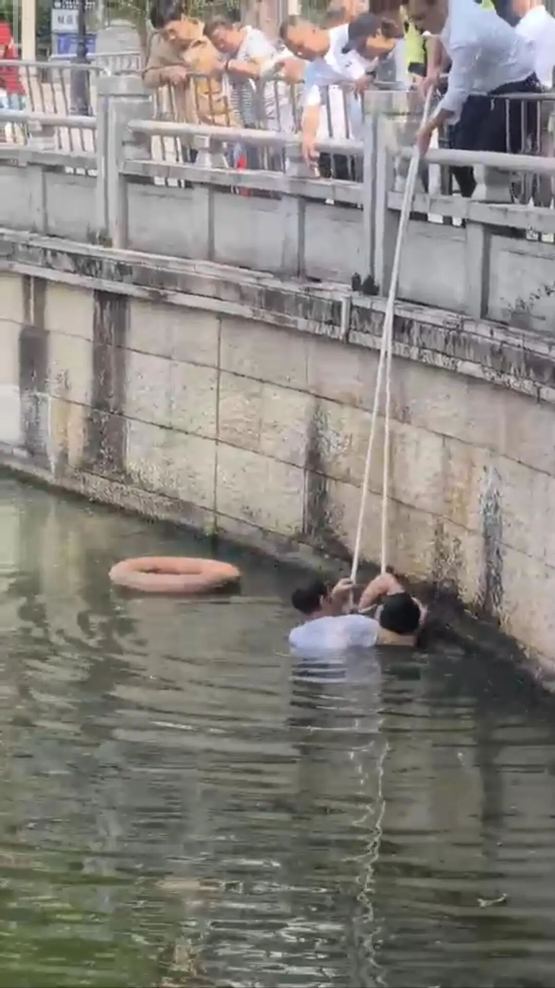 75岁阿伯果断下水竭力托举