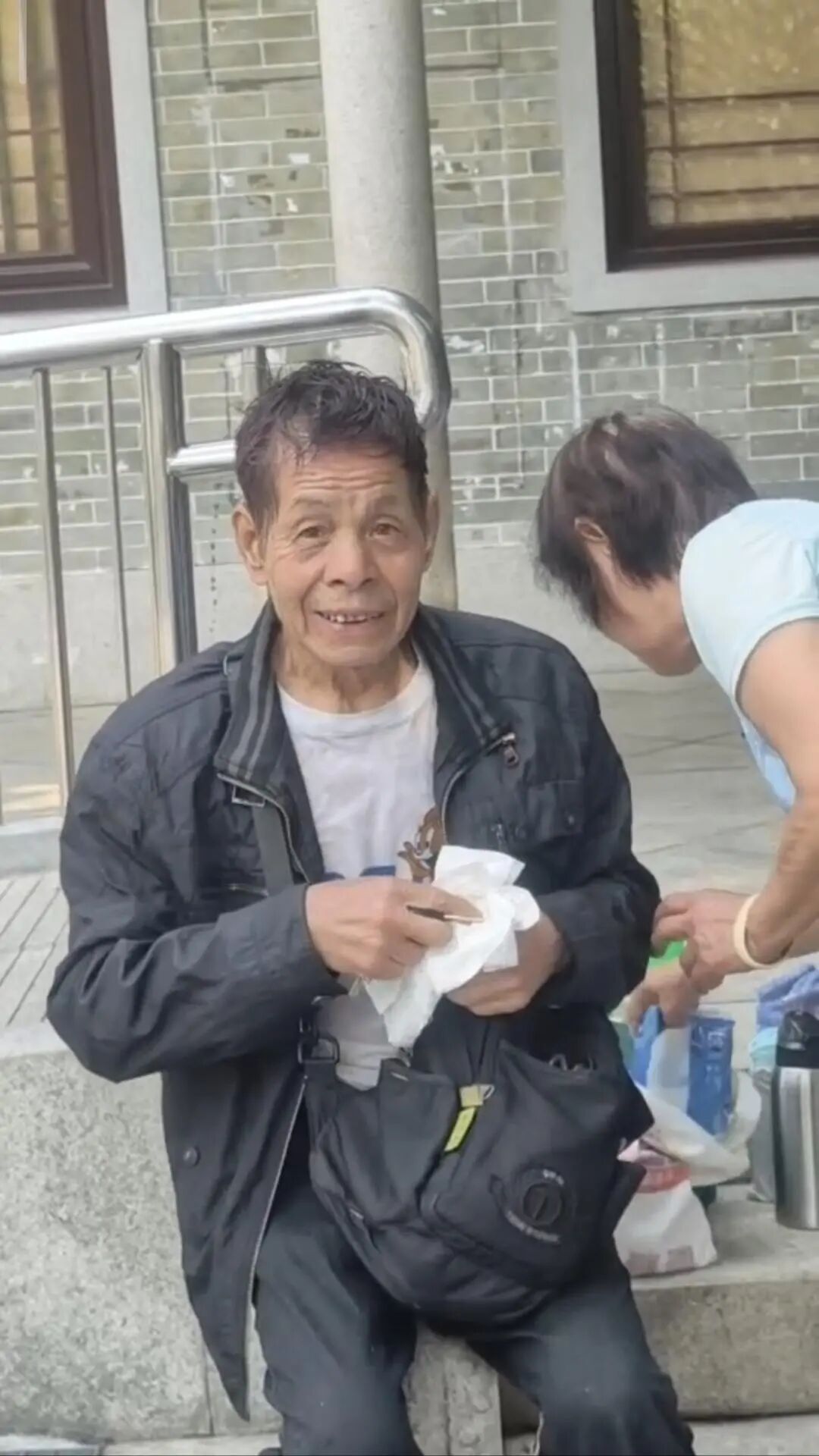 老伯林伟佳救人后在附近休息