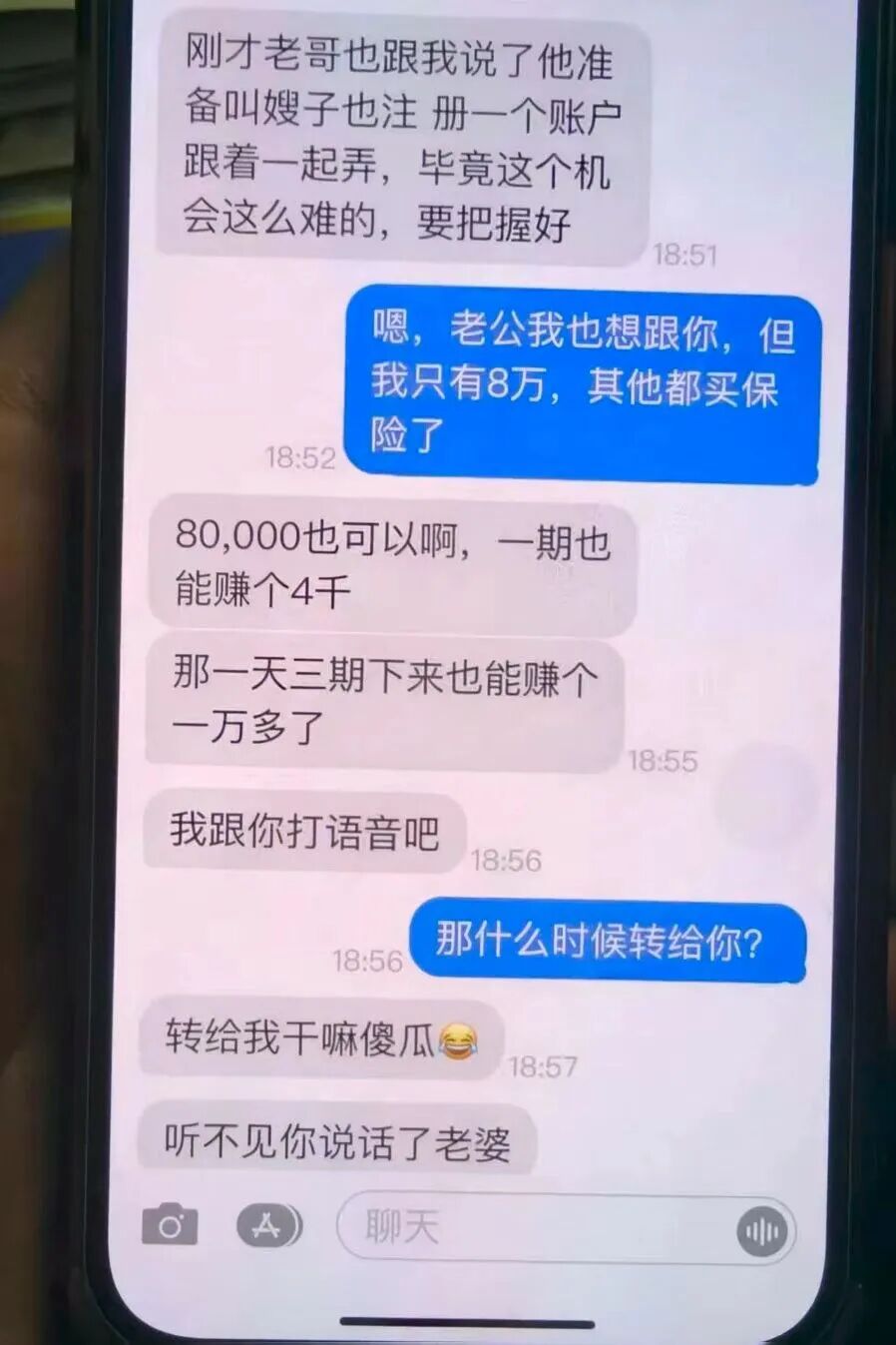 A女士与网恋对象的部分聊天记录。