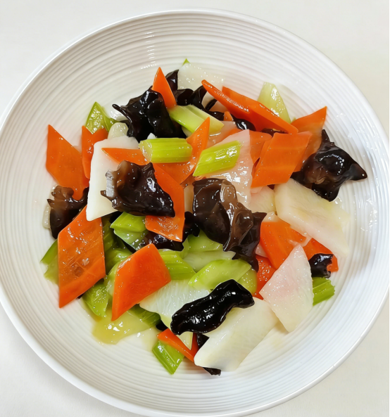 二、芹菜木耳炒山药 · 护肝去燥、除湿健脾