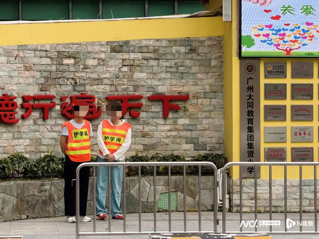 3月20日早上7点40分,南都N视频记者走访了白云区集贤小学,彼时已有4人身穿写着“护学岗”字样的工作服,站在校门口迎接学生入校,记者询问得知,4人为学生家长。记者看到,还有三名安保人员与“护学岗”家长一同在校门维持秩序。早上8时许,4名家长脱下工作服离开了学校。