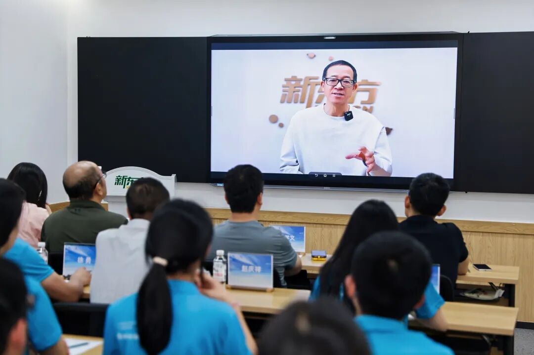 ▲俞敏洪通过视频为全体少年送上寄语。
