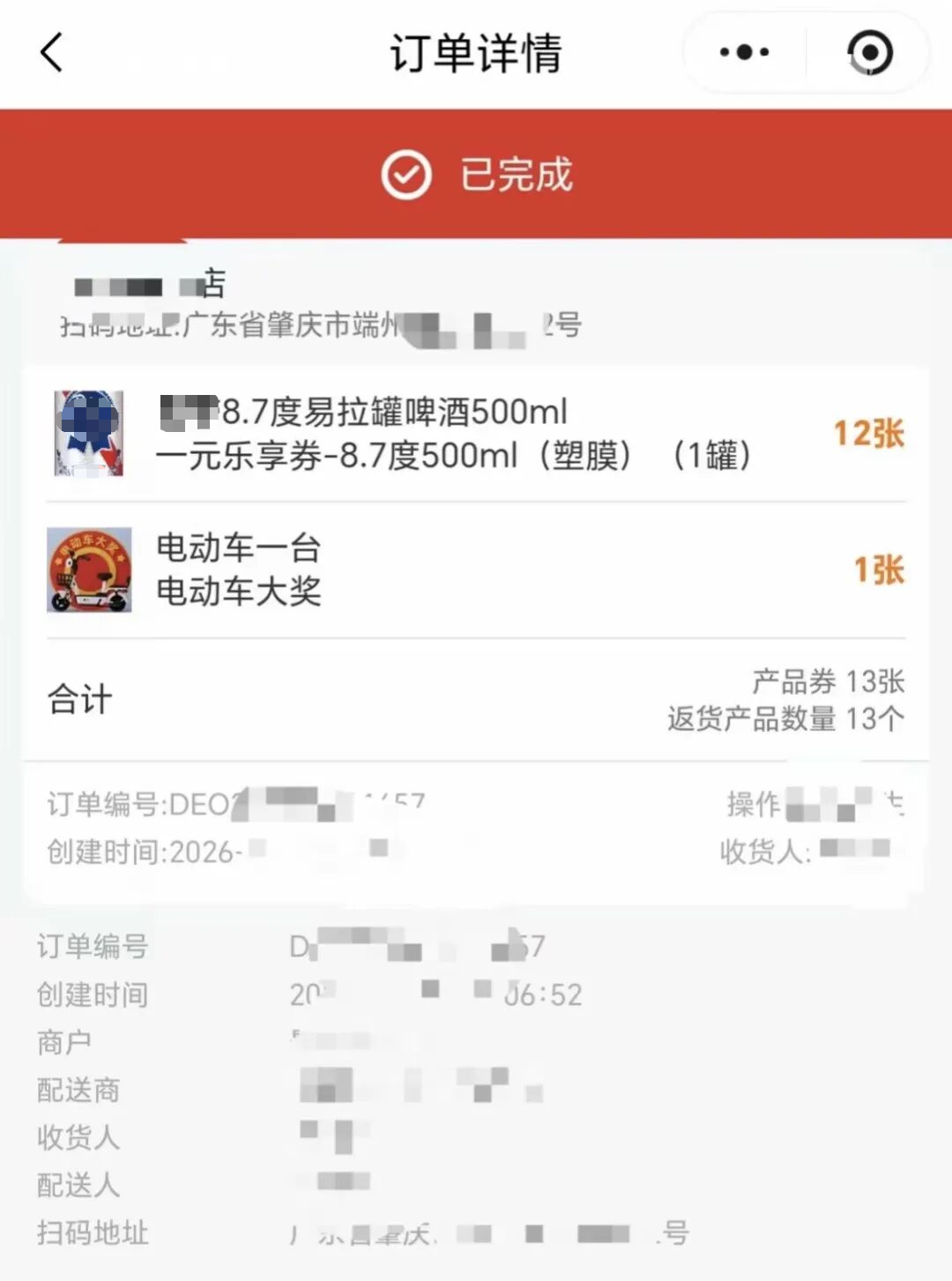 该男子表示,后续有商家给他发来信息,称自己不小心核销了他的中奖码,还没有兑奖,可以把码发还给他,啤酒厂家也与当事人取得联系。
