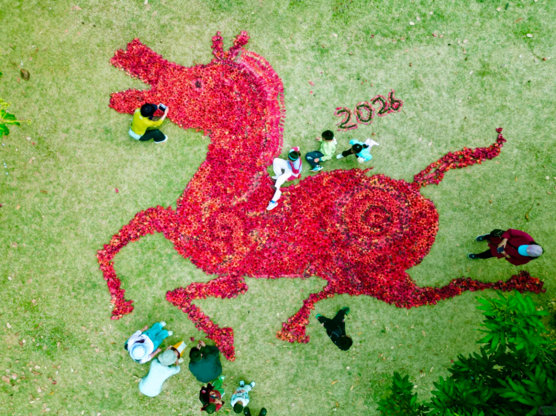 这匹由数千朵木棉花组成的红马昂首扬蹄