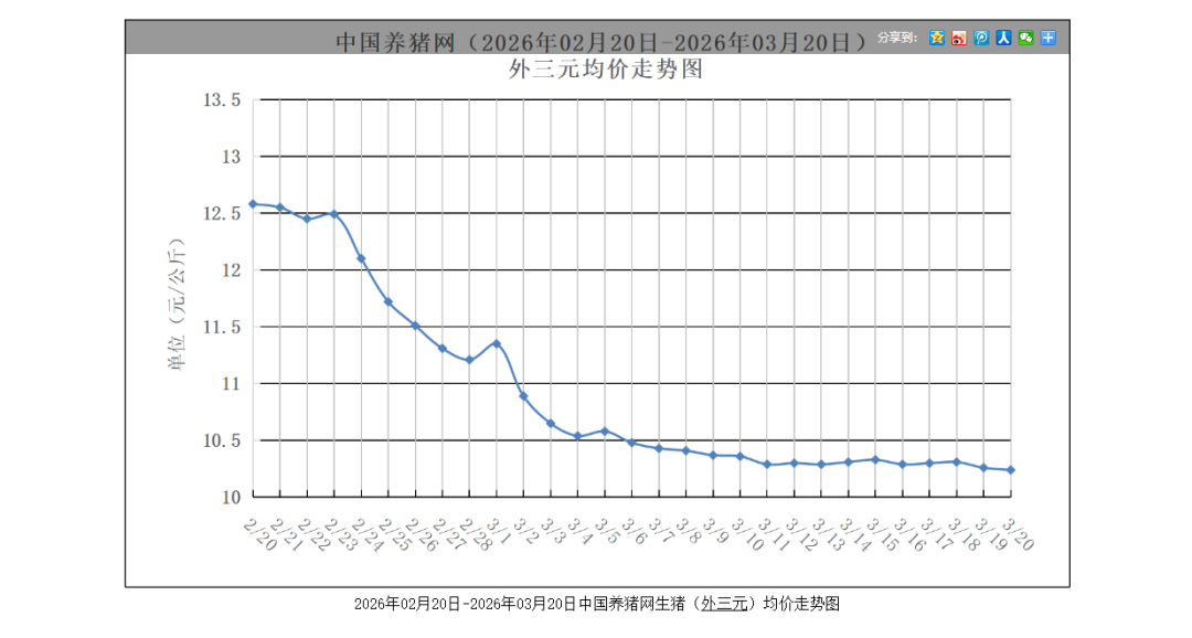 ▲近期外三元生猪均价走势图 中国养猪网截图