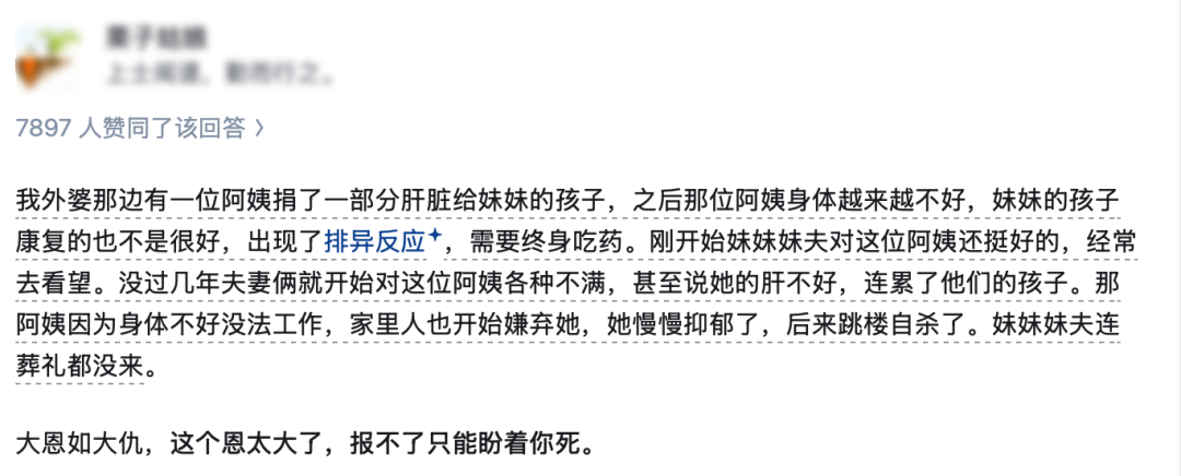 “阿姨给外甥女捐肝弄坏身体,外甥女也要终身服药,亲人从开始的感激到嫌恶怨怼,觉得是她的肝不好连累了孩子。