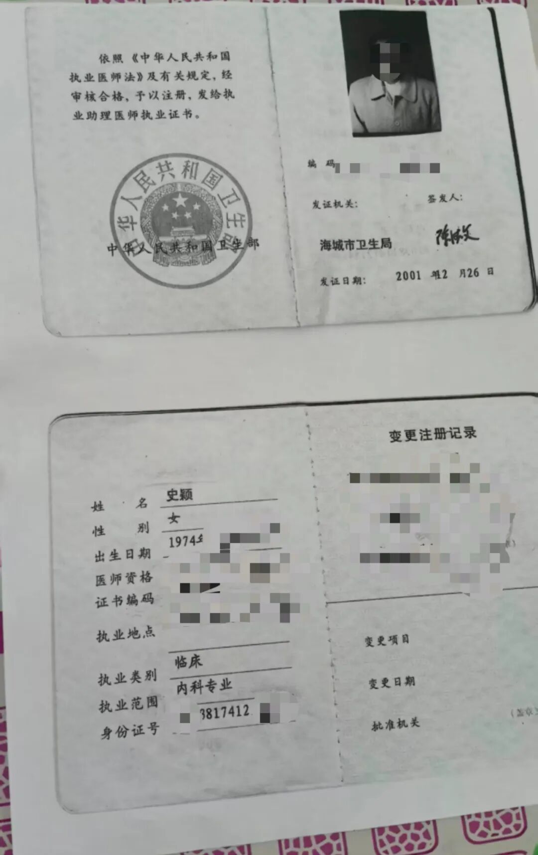 “这个比较简单,我们会帮忙解决。”3月26日,鞍山市医学会工作人员告诉记者,他们负责办理助理医师资格证有关业务,执业证是别的部门。史女士此前并没咨询过他们,她这种情况比较少见,会核查有关记录,看当年为何登记错,“让当事人联系我们就行,会尽力核实修改。”