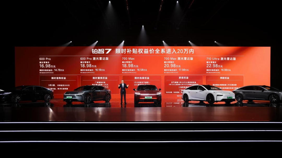 铂智7的减法,首先减掉“模糊难辨的配置体系”,摒弃“低配引流、高配割韭菜”的行业通病,仅推出两大续航、五个版本的车型矩阵,限时补贴权益价14.78万-19.98万元,版本划分紧密贴合用户实际用车场景,无冗余选择、无隐晦差异,不同预算、不同用车需求的用户都能一眼找到适配车型。