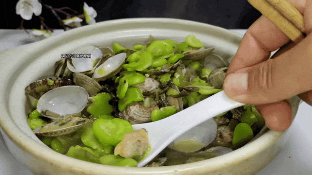你也可以选择把花蛤肉挑出来,而后再来和蚕豆、雪菜一块烧一烧,还是那个重点,煮花蛤的原汤一定不要浪费,绝对是这道菜的鲜味灵魂。