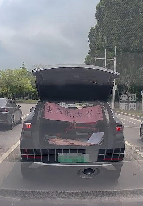 广东一司机钓到一米长大鱼,开车路上打开后备箱亮横幅炫耀:“我钓的大不大”,下一秒 ...