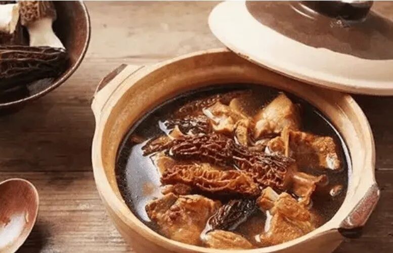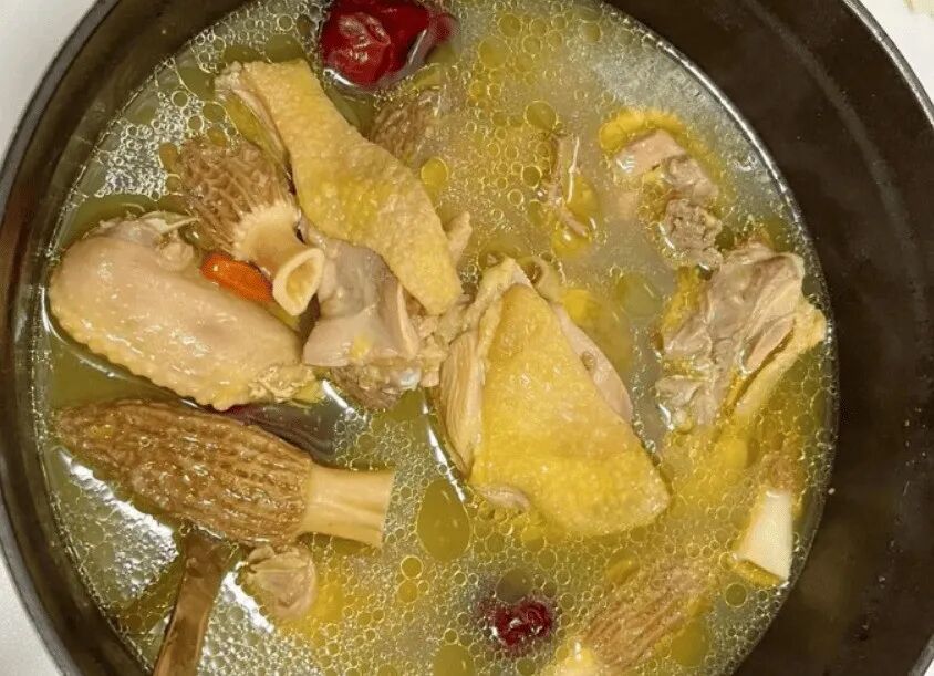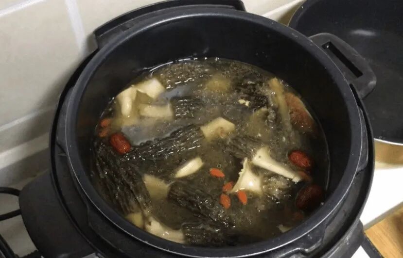 - 加入泡发好的羊肚菌、红枣、枸杞,继续炖煮20分钟。