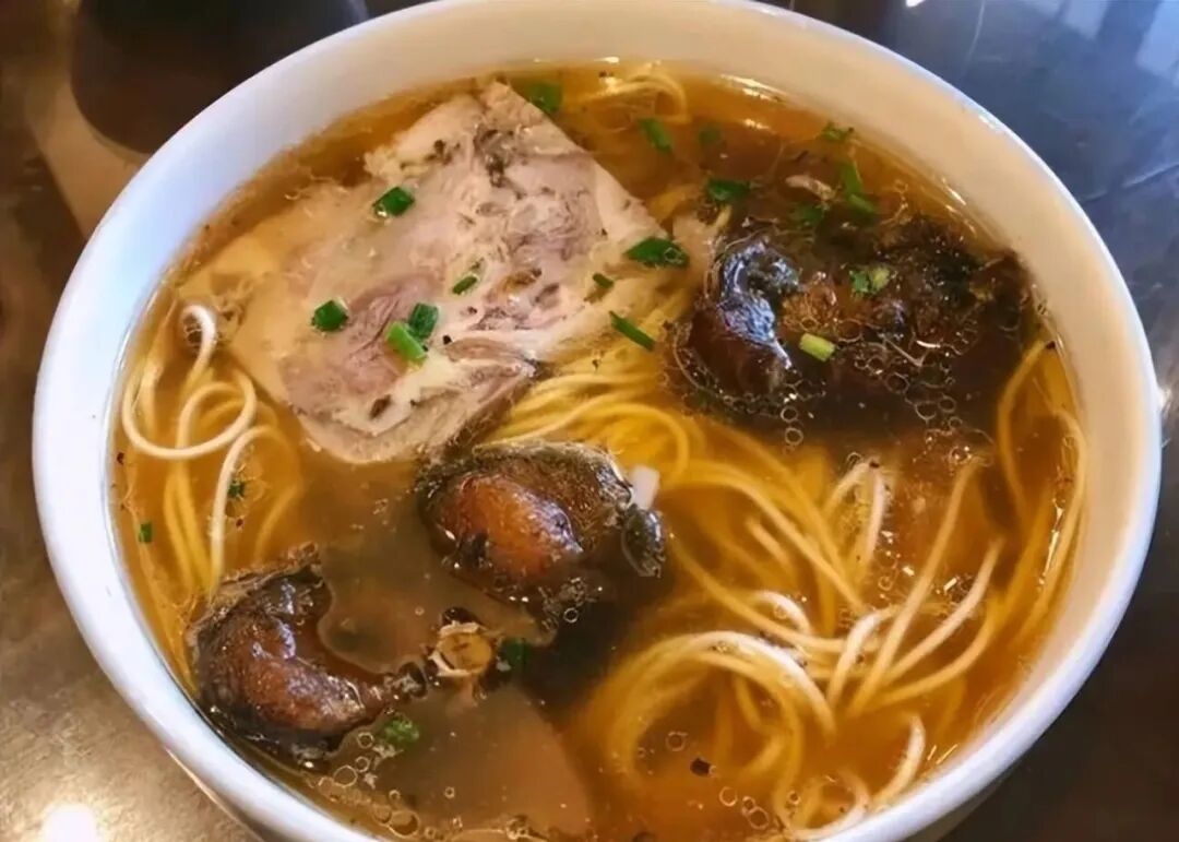 - 另起一锅,烧开水,放入面条煮熟,捞出放入羊肚菌汤中。