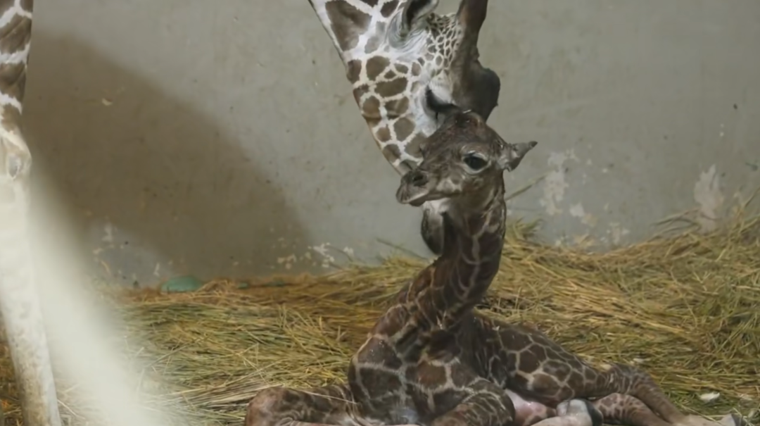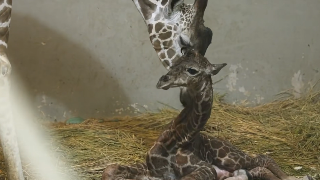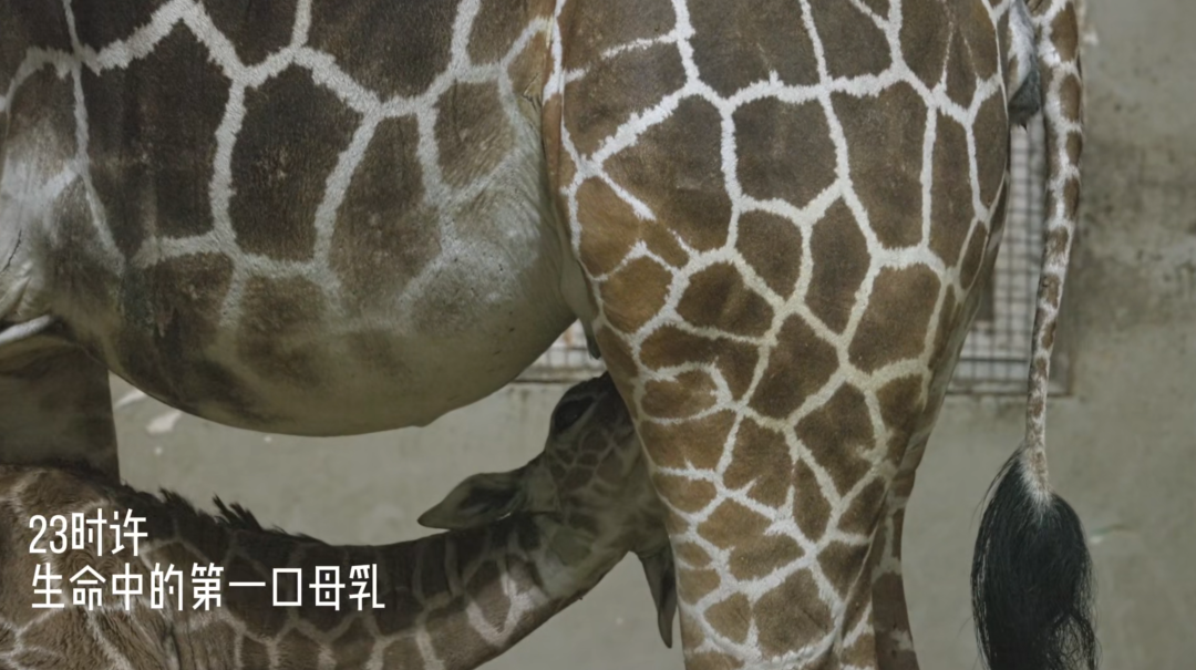 近日,有网友在上海动物园目击长颈鹿妈妈破水分娩瞬间。