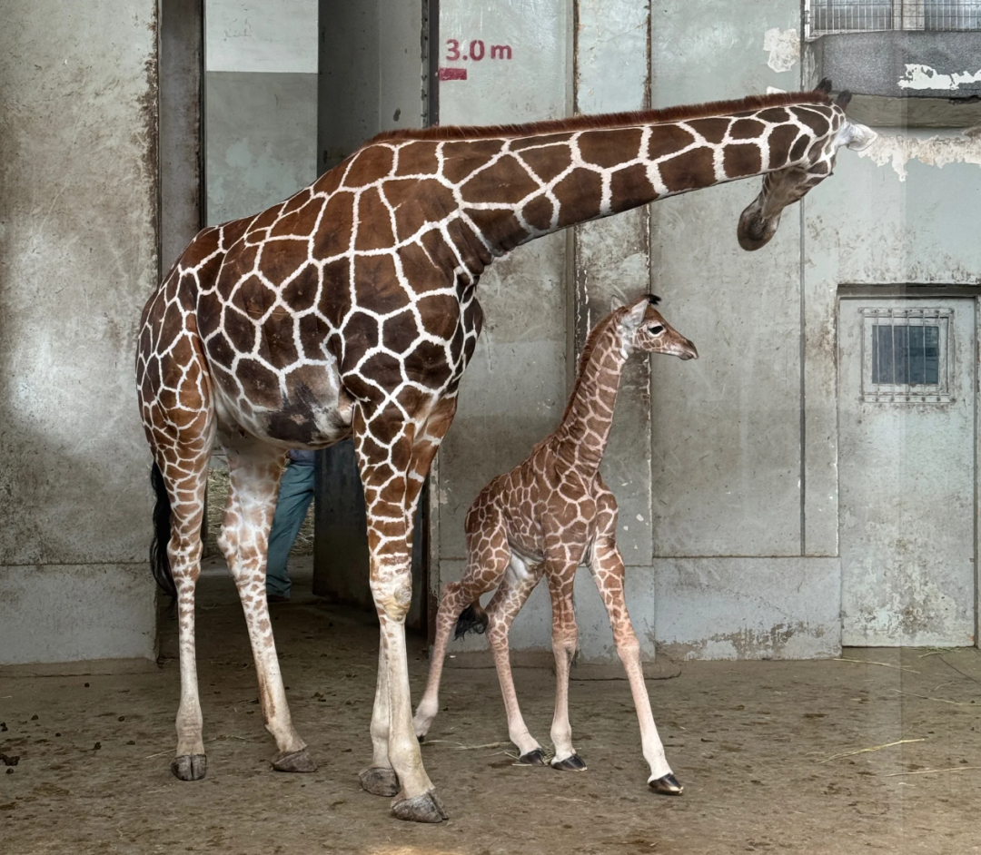 饲养员对于养育长颈鹿幼崽也很有经验了,希望这个身高就赢在起跑线的萌宝可以健康成长。
