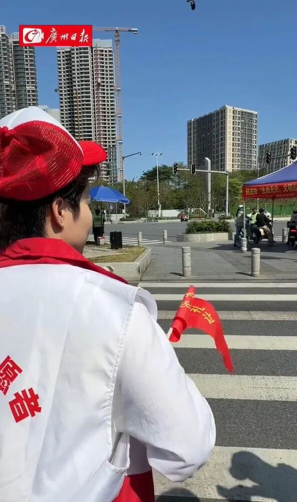 4月1日上午,在广州市黄边北路云启路路口附近,两位市民被“红棉小屋”专职劝导员拦下后,由轻微交通违法行为人“秒变”为文明交通志愿者。随后,二人还在“红棉小屋”里观看了交通安全警示片。