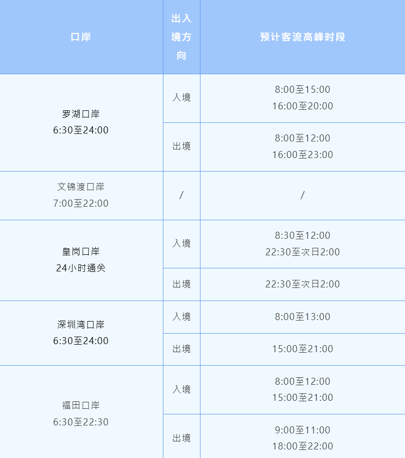 清明復活節長假各口岸高峰時段一覽。