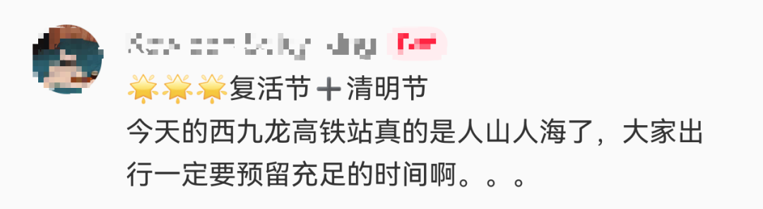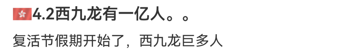 還有不少網友在社交平台發帖感慨,有人誇張形容「西九龍有一億人」,亦有網友表示「人多到好似過年春運」。