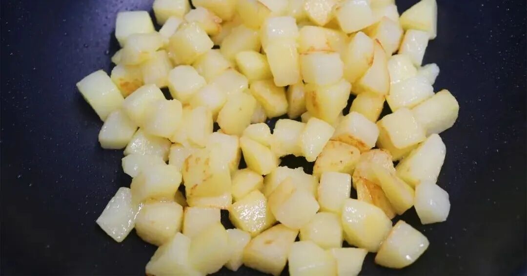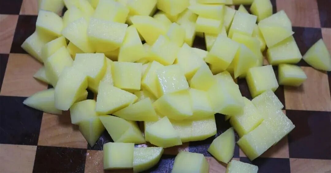 处理土豆 土豆要不要焯水,别焯,换成煎,口感更绵又带焦香,土豆去皮洗净,切大点的方块,太小一翻就碎。