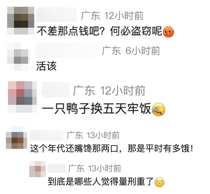 此事曝光后,引发舆论分歧。有人认为,鸭子虽小,但处罚体现了法律的严肃与严谨;也有人觉得,五天拘留有些过重了。有律师表示,此次拘留处罚属于法定最低幅度处罚。