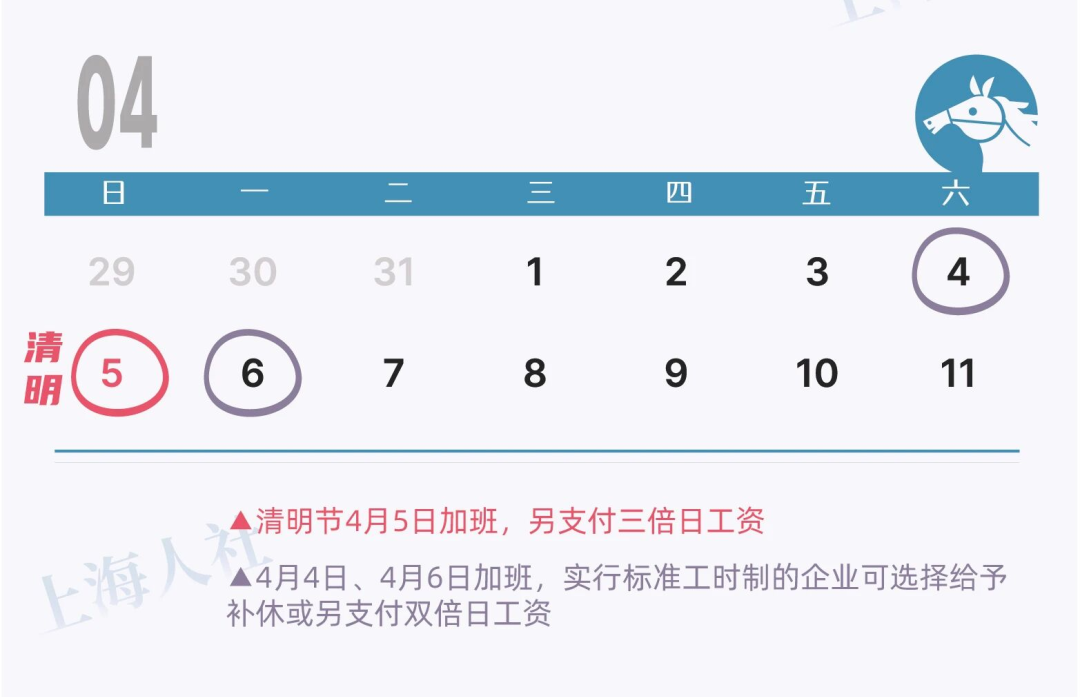 ■ 4月5日(清明节)是法定节假日,单位只要安排加班,就应支付不低于本人日工资的300%的工资报酬。