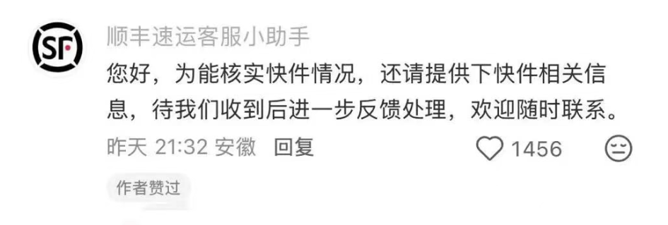该网友发布的一张物流信息截图显示,4月2日3时12分至当日4时48分,该快件在郑州园博转运中心进行分拣转运。在该贴文的评论区,有蓝V认证的物流公司客服账号留言称,请提供快件相关信息,待收到后进一步反馈处理,欢迎随时联系。