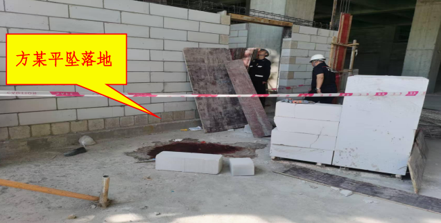 夏某威、徐某琴和夏某三人逐层排查,在3层风井墙体旁发现方某平俯卧于地面,面部朝下,头部周围有大量血迹,安全帽脱落于身旁。随后深圳恒泰沣公司泥工工长曾某斌、施工现场负责人曾某、安全员朱某昌也都到达3层方某平坠楼位置。