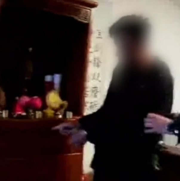 一名头戴鸭舌帽的男子,趁着深夜无人,翻窗进入电器行。只见他走到店内的关公像前,站定行礼,念念有词。