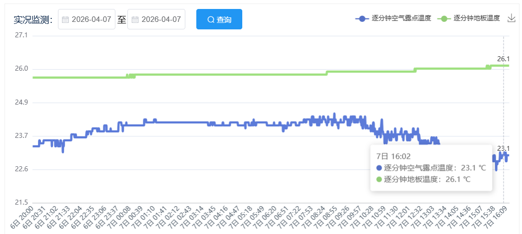 4月7日16时左右空气露点温度与地板温度对比