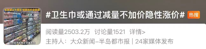 #卫生巾或通过减量不加价隐性涨价#