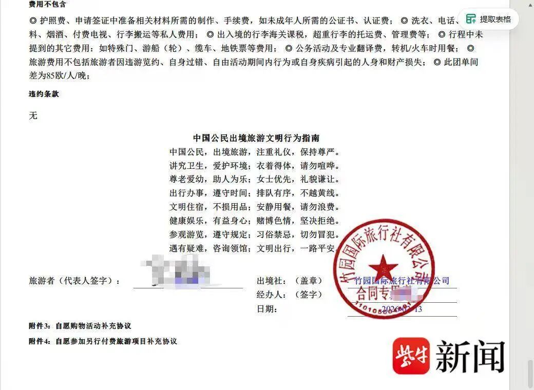 小新介绍,涉事的竹园国际旅行社是知名出境游旅行社,他们选的项目号称“陆享公务舱”,此次行程每人费用将近3万元,她也是经过多方了解后才选择了该旅行社,就是希望能获得相应的安全保障,没想到会发生行李在旅行社大巴上丢失的情况。