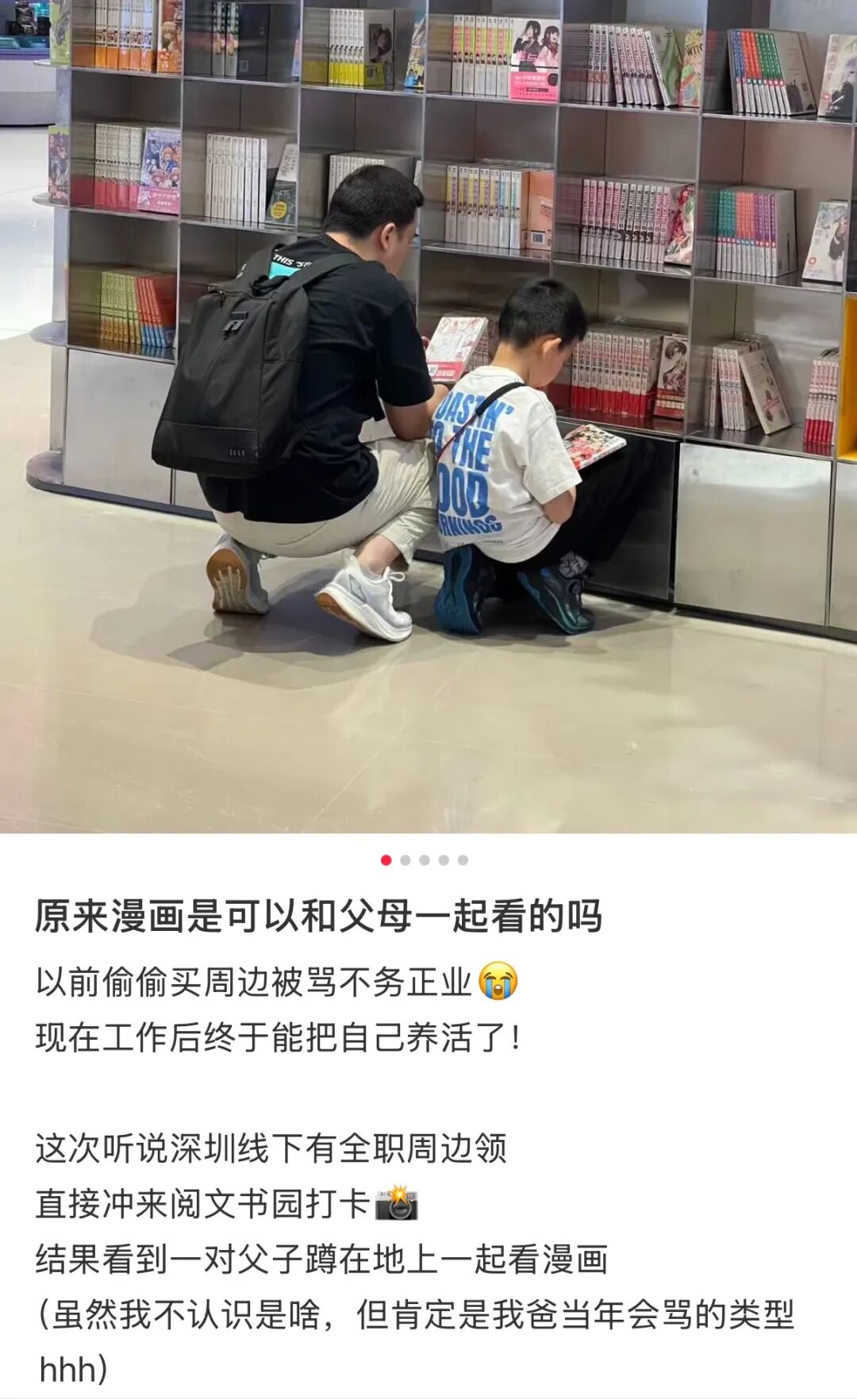 或许,也正因为如此,我们才会看到开头一幕:一个父亲蹲下来,陪孩子一起看漫画。