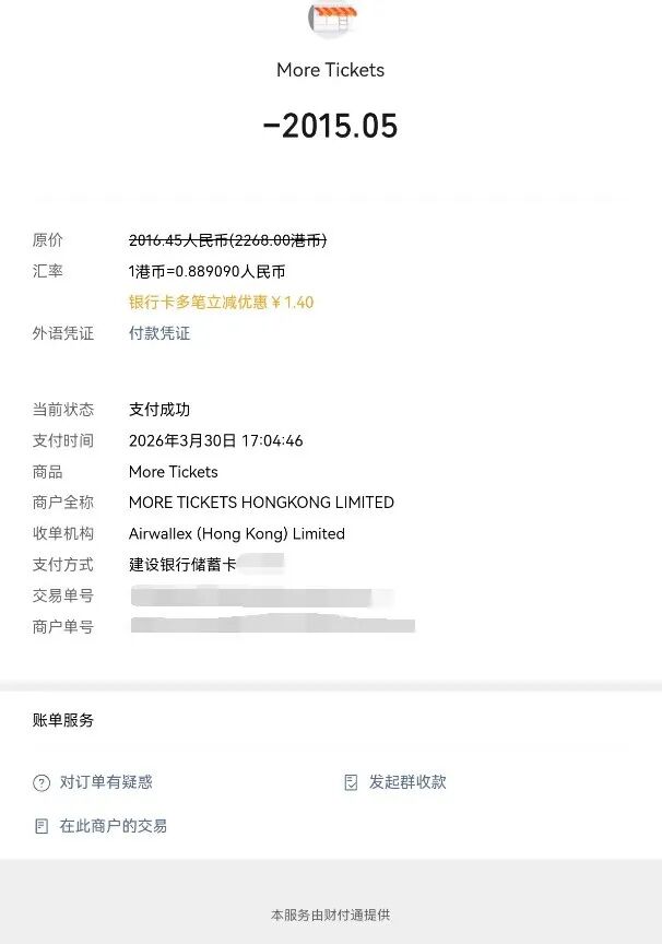 这样艰难的日子苦熬着,没想到一笔冒出来的订单再起波澜。据欧阳先生讲述,平时女儿卧床在家,因为四肢瘫痪仅有两只小拇指可以动弹,自己给女儿准备了一个平板电脑用作消遣,女儿的简单交流也靠在平板电脑上打字。3月30日晚上5点多,自己突然发现女儿的微信上有一条2000多元的支付记录,大惊之下,连忙点进去查看,发现是女儿在一家名为“摩天轮”的票务平台上购买了一张4月9日邓紫棋的中国台北站演唱会门票。