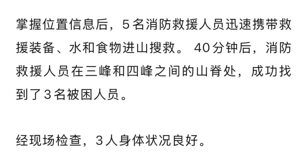 “在我们经常救援的一个山上,最终确认,他们被困在三峰和四峰之间的区域。”景德镇市珠山区消防救援大队景德大道消防救援站消防员李嘉熙说道。