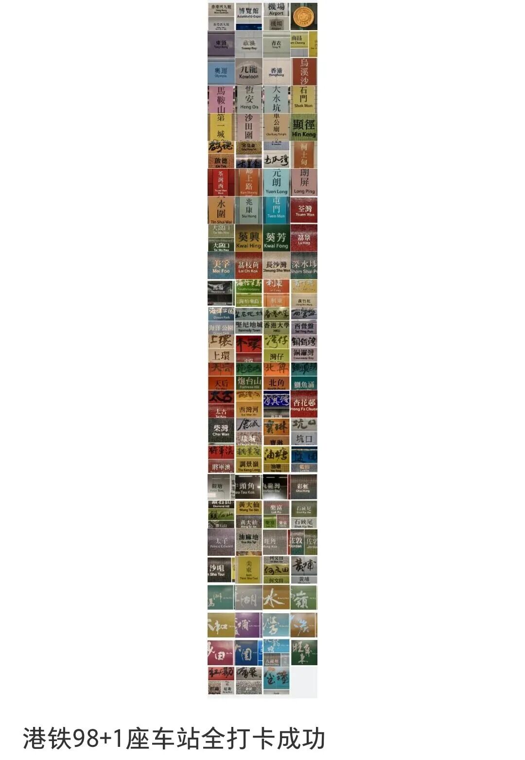 还有人称,旺角站的红色十分亮眼,让人一下子感受到这座城市的热情,“每个地方都有自己的独特性,香港地铁这种马赛克墙设计,就是十分特别的城市文化。”甚至有网友po出港铁马赛克墙的全打卡记录。