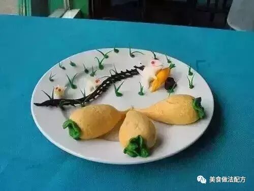 假蟹黄的制作:将澄粉加红蘿卜汁蒸熟即成。