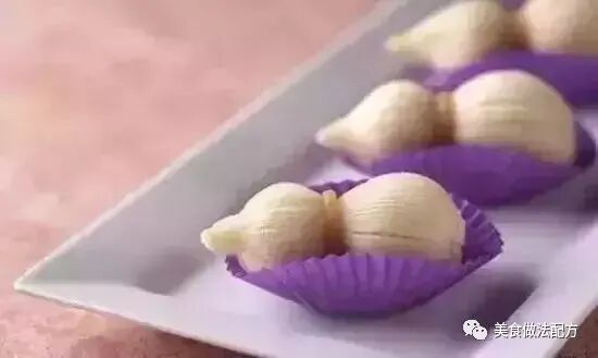 制作:先将鹰栗粉100克、糯米粉400克、水1000克和好后,放蒸箱蒸制20分钟,蒸好后取出放一旁凉后待用。再将奶油500克、苹果300克、菠萝300克制作成馅。取米兹皮35克包6克奶油馅,撒少许抹茶粉即可。